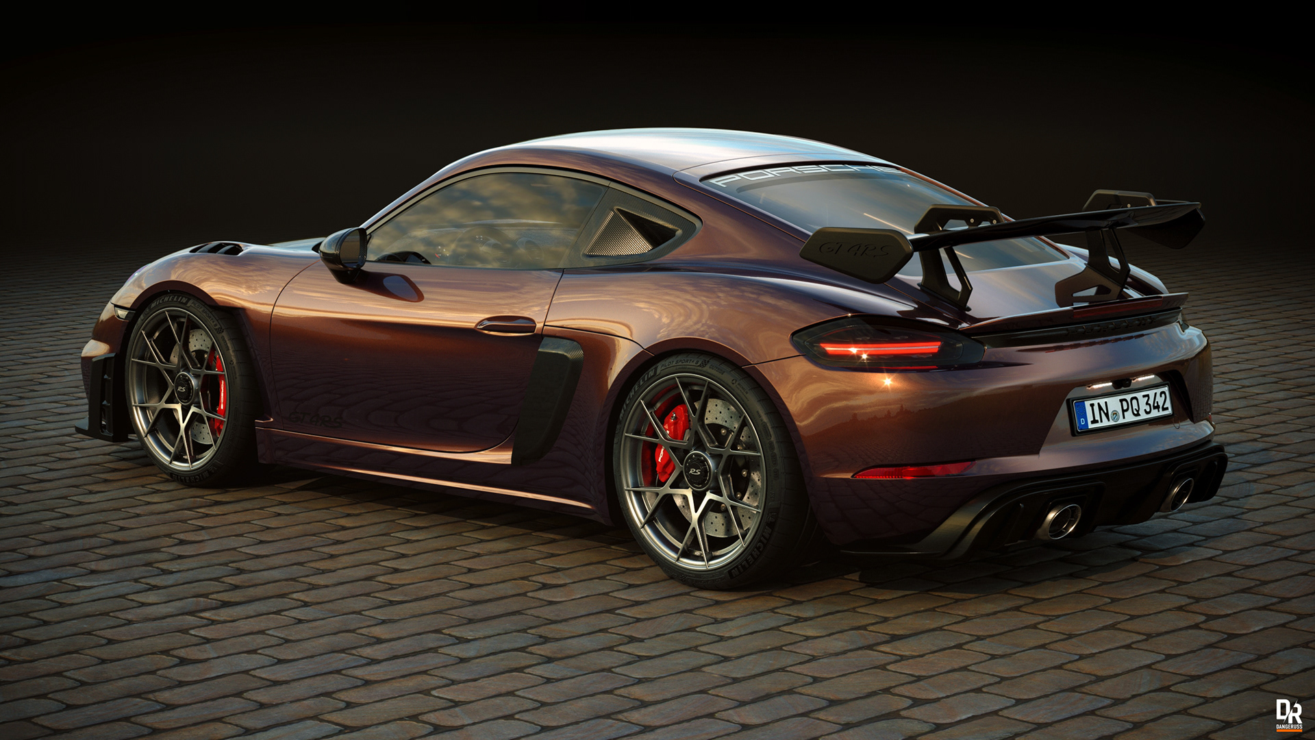 There seems to be some cars that visually evolve to a "perfect" form. I think the Cayman is the best looking Porsche offering, and the newest GT4 RS model has reached that "perfect state" in my eyes. Here's a 2023 Cayman GT4 RS in a "paint to match" shade of root beer metallic that Porsche really should offer. Rendered with 3DS Max and Corona Renderer.
